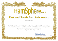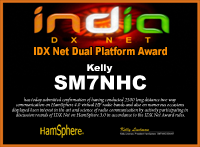 | IDX Net Dual Platform Award is a first of its kind on HamSphere which encourages operator participation and activity on both HS3 and HS4. Unlike all other awards, this award provides an opportunity to HamSphere operators to not only work DX on HF radio bands of HS4 but also enable them at each step to understand various associated physical phenomenon, underlying propagation behavior, optimum selection and use of antennas, and all the whys, whats and hows of HF radio communication. Rather than making contacts without really knowing why they happened, the IDX Net Award paradigm lets the operator dig into the true reasons of success or failure; and consequently achieve a greater sense of accomplishment by expanding heir horizons and knowledgebase. This would eventually not only help people become better HS4 HF operators but will bring them closer to the real world of HF radio. Operators will find themselves better equipped to face any real challenges of amateur radio communications.